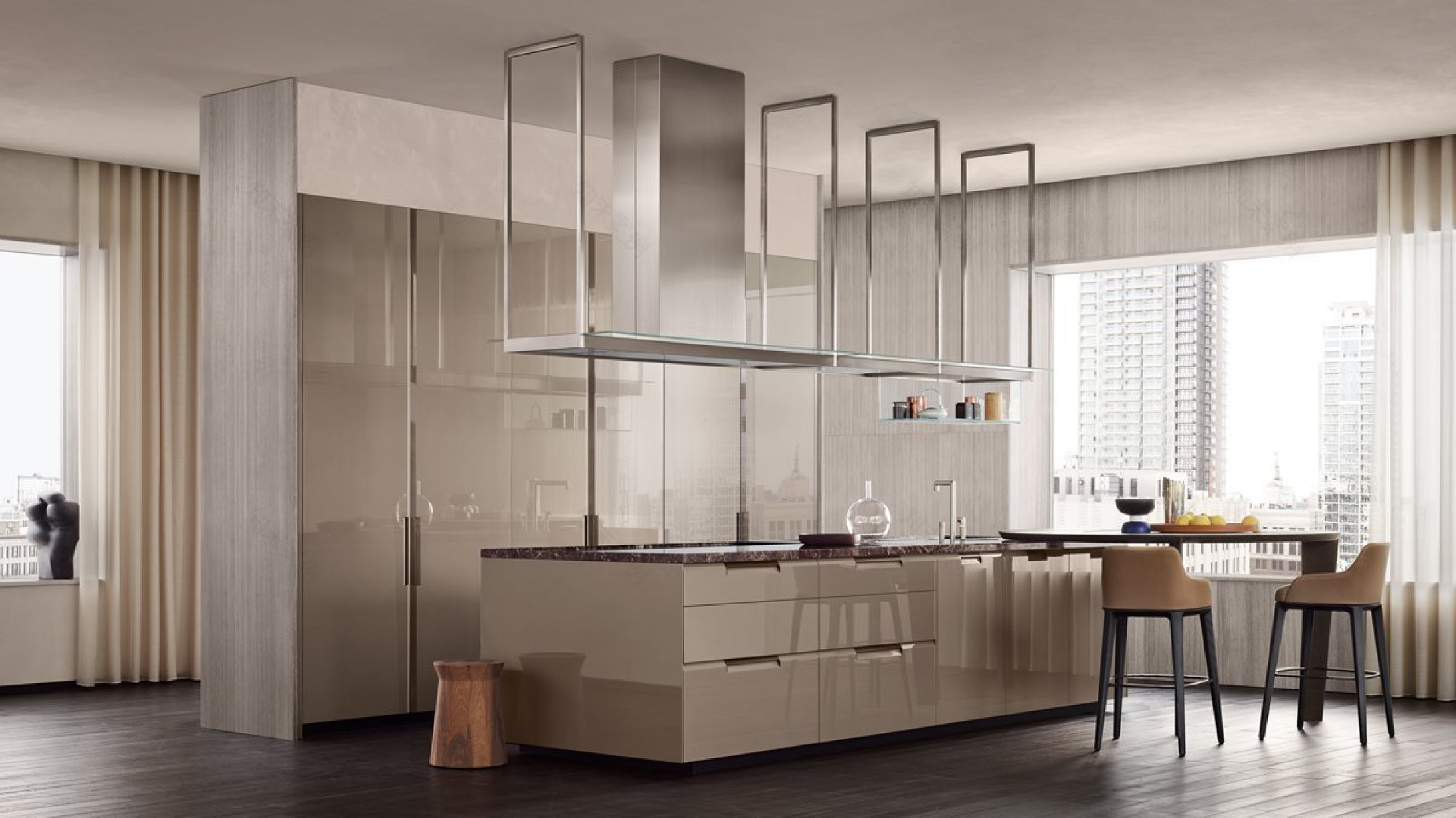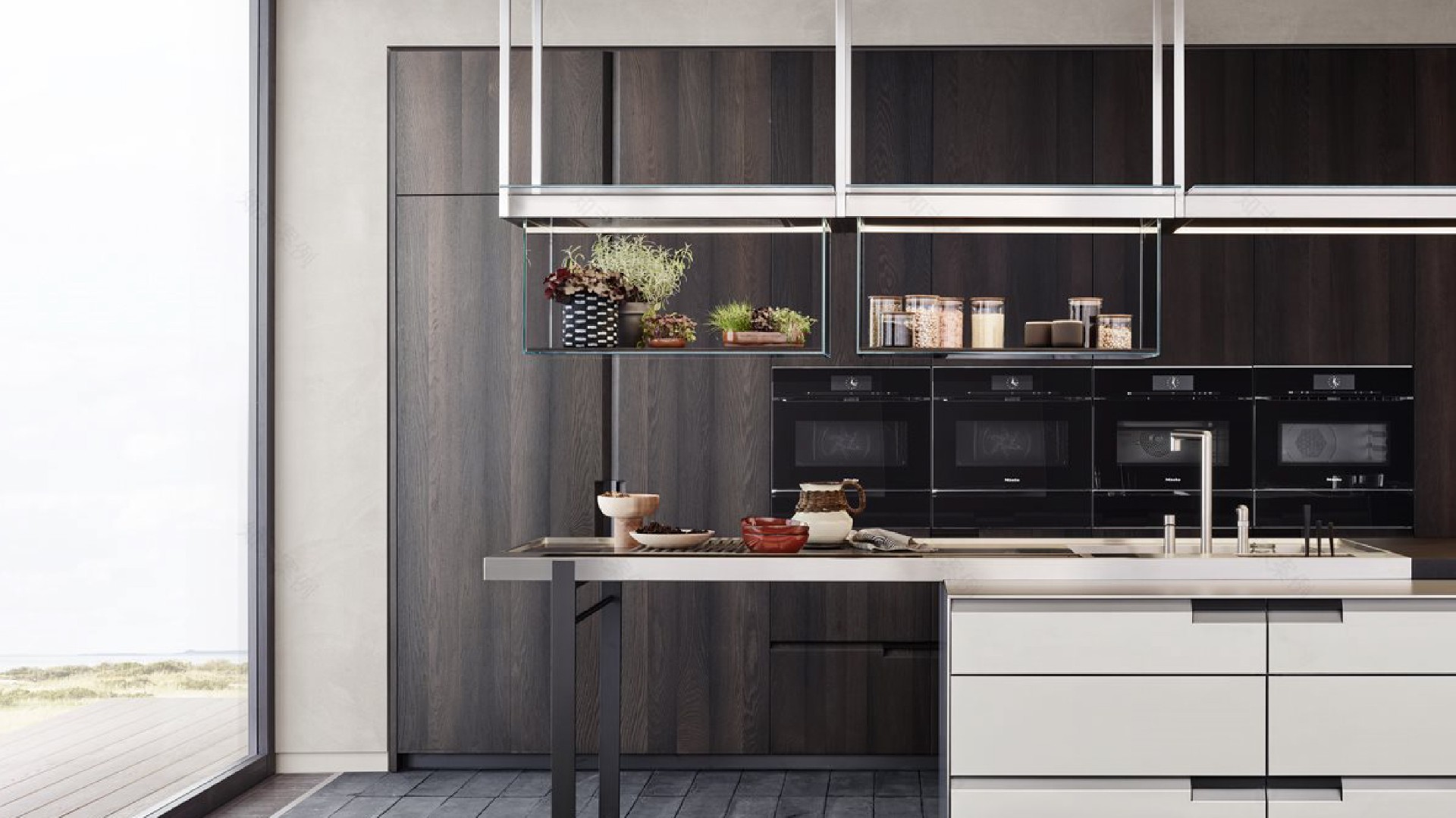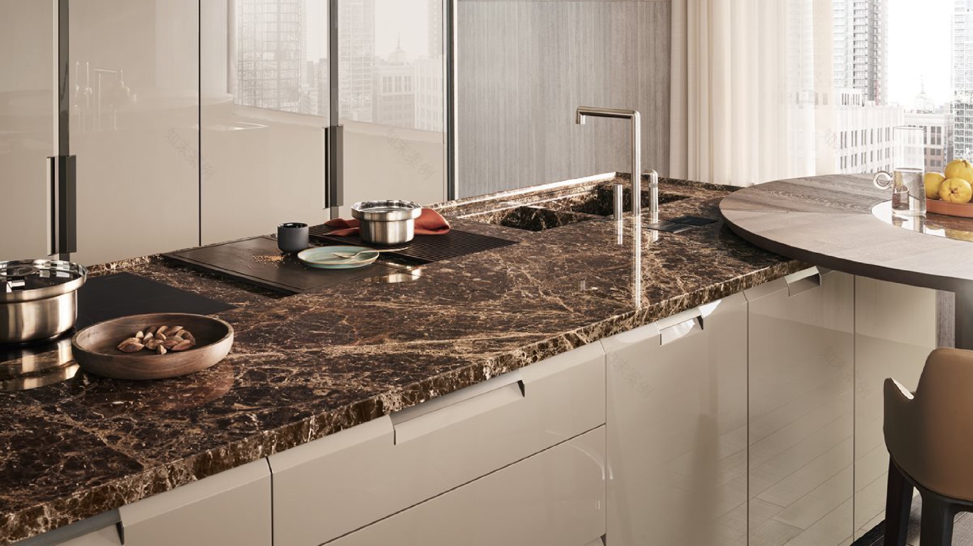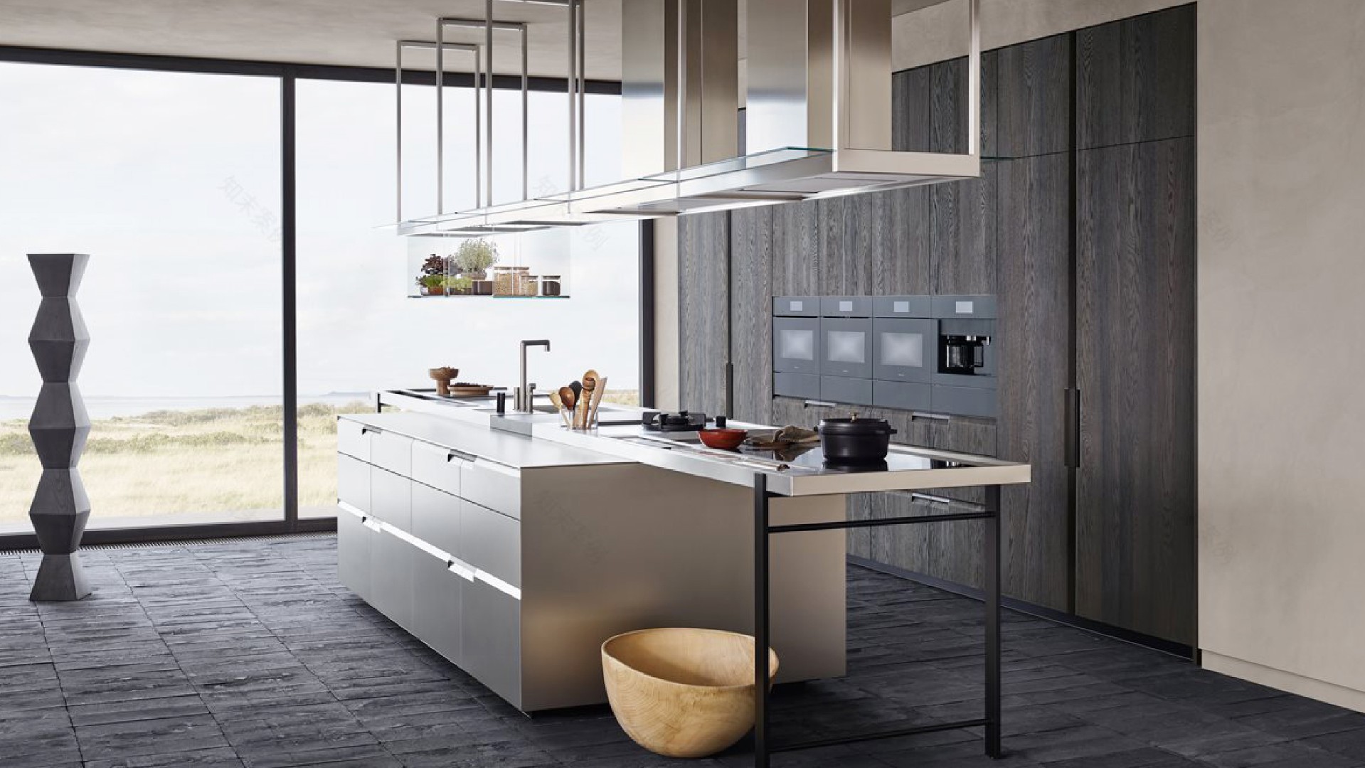 设计风格:以不锈钢原色肌理为基底,构建极简太空舱未来主义工业风