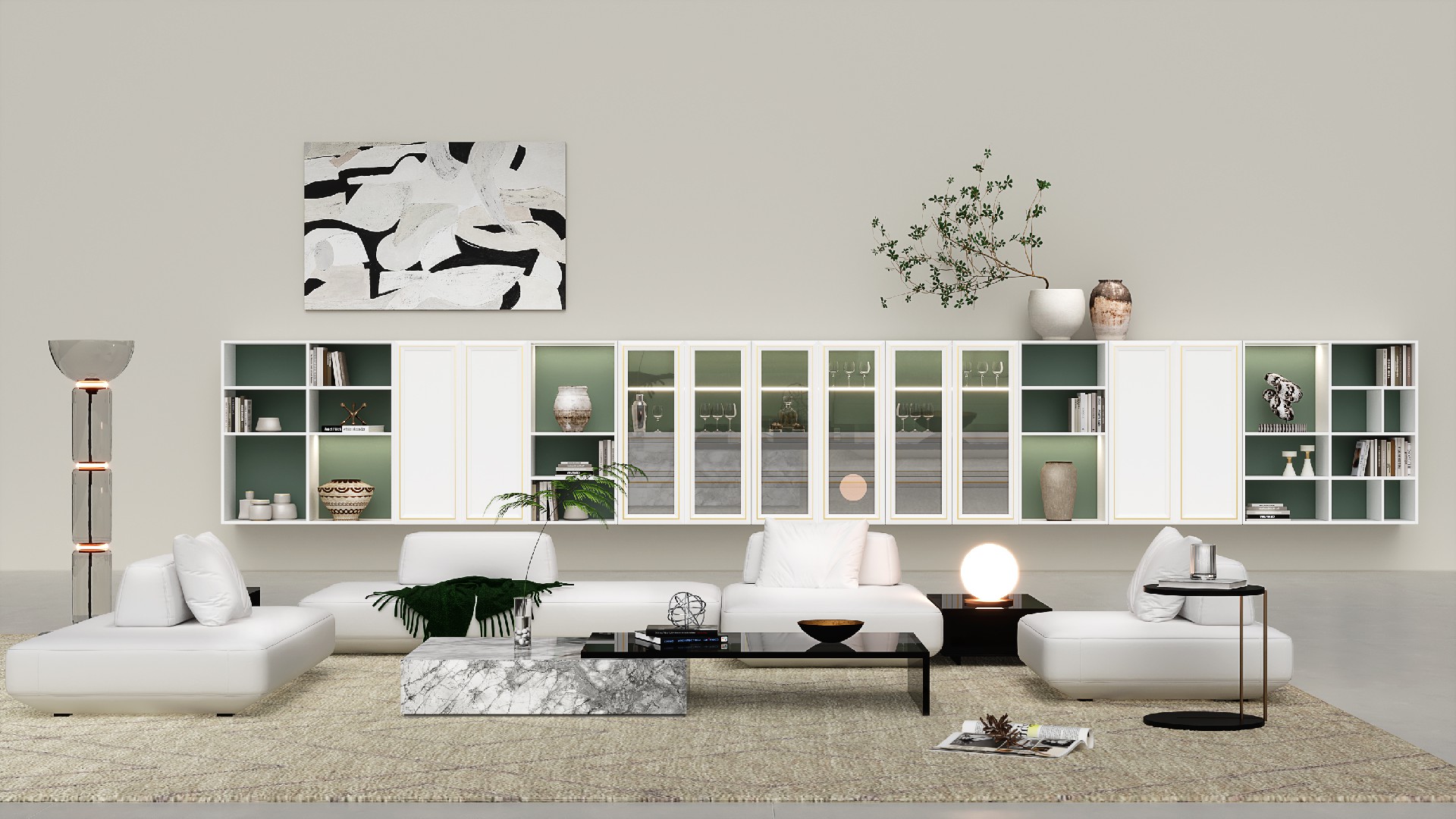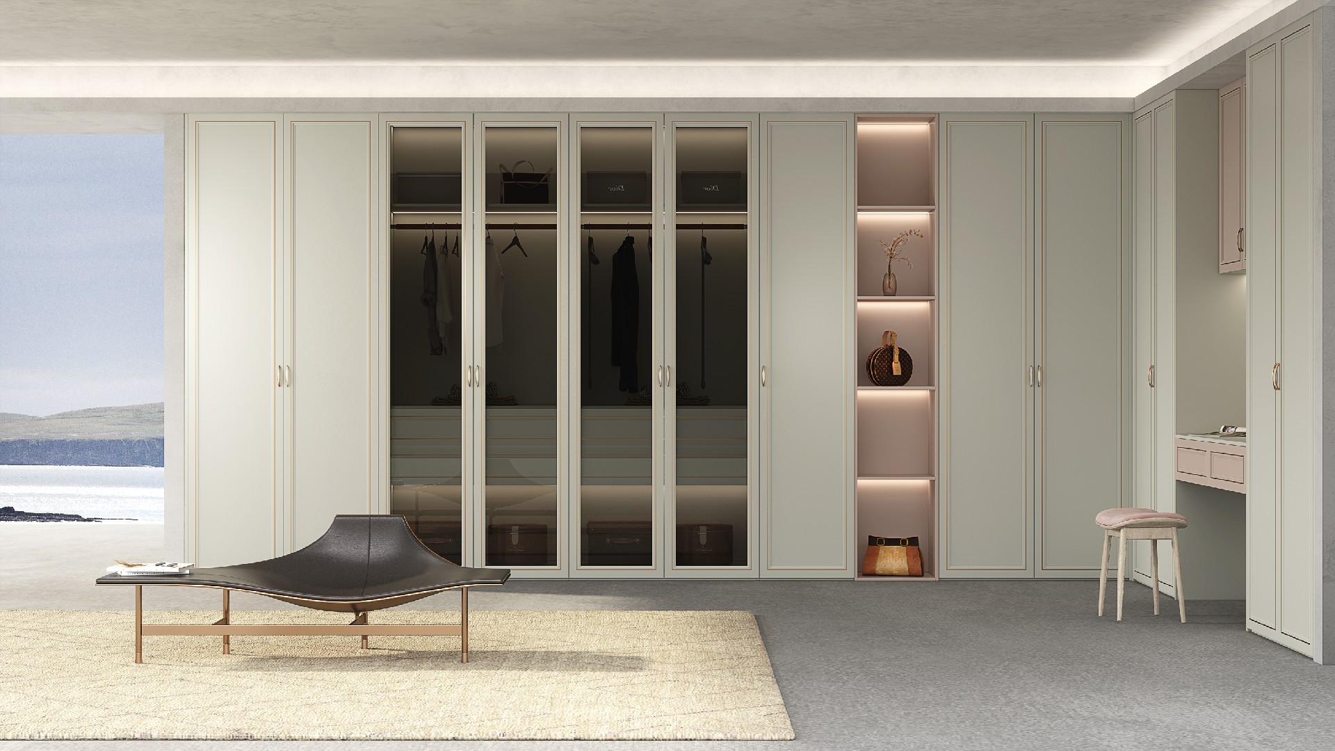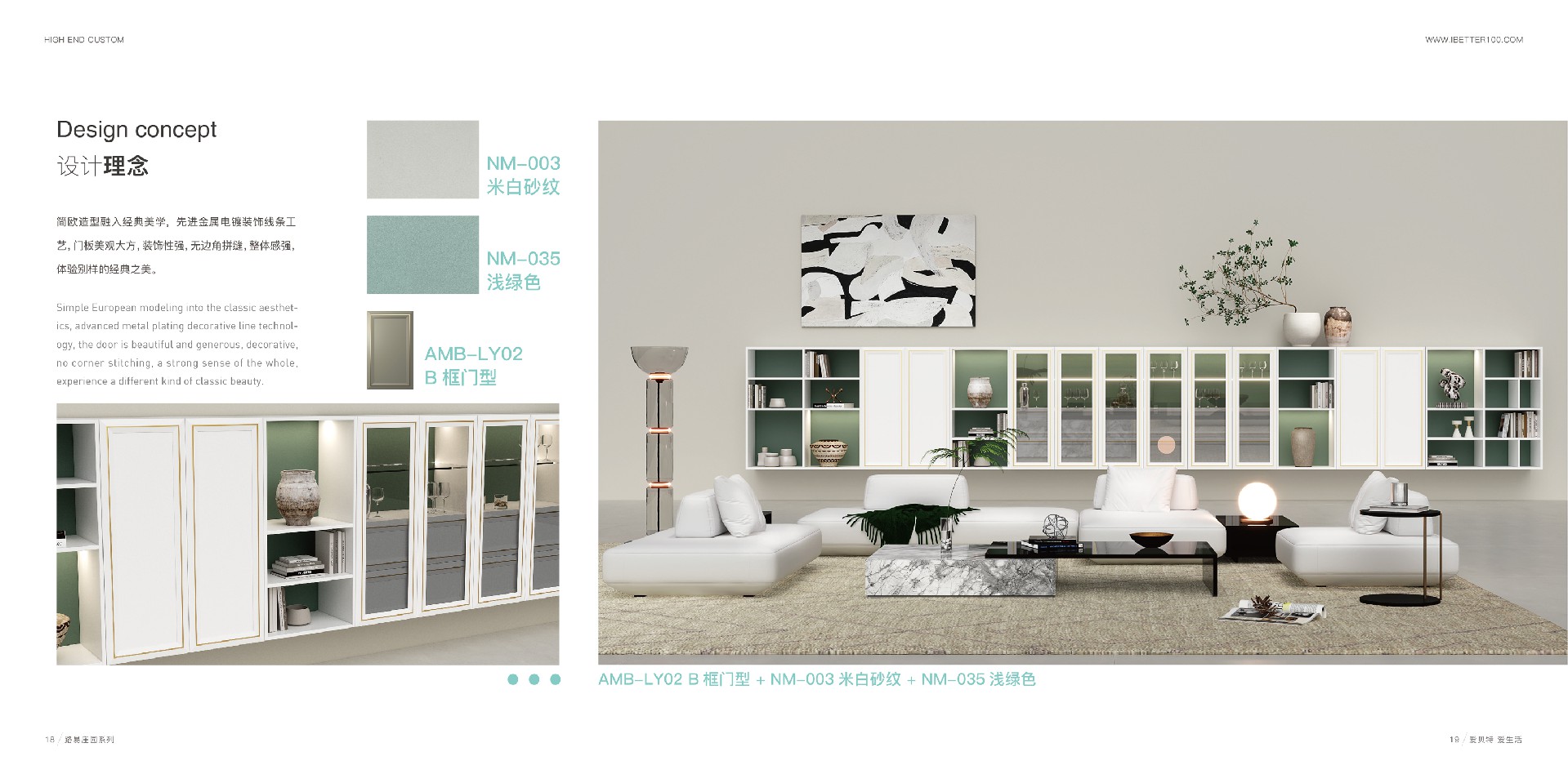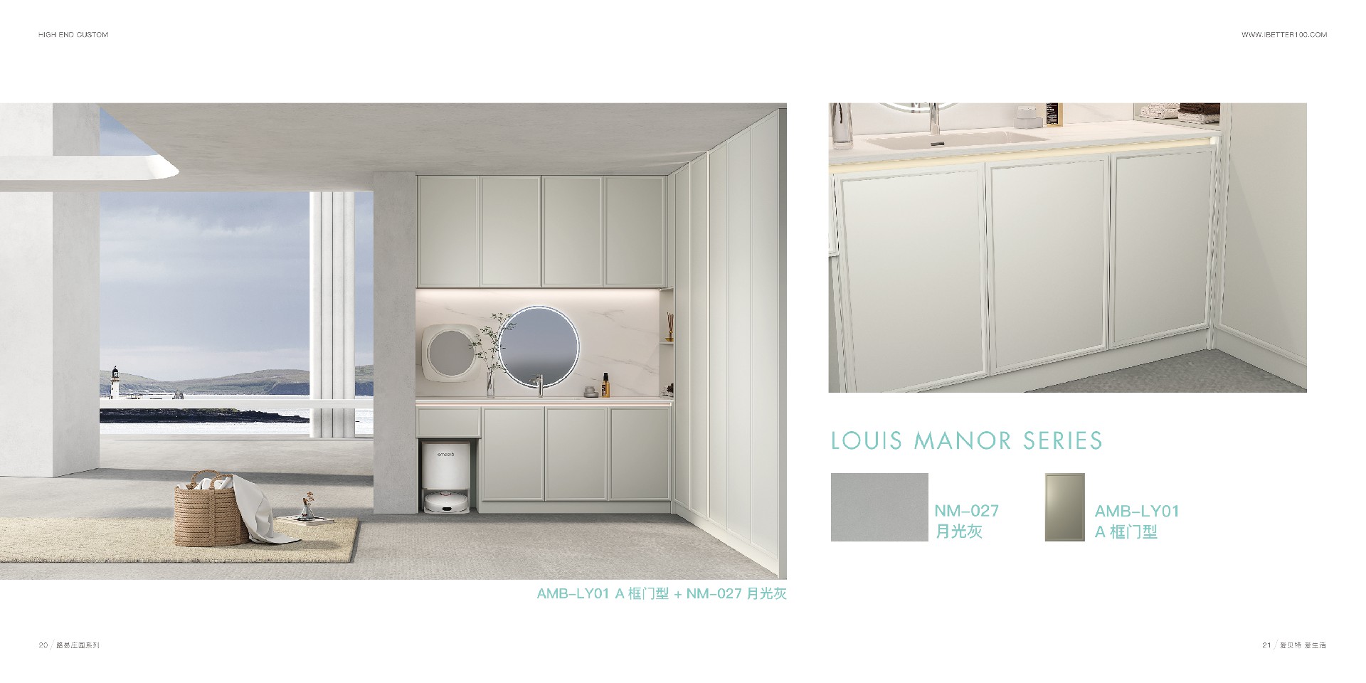 以欧式经典为源泉,探索金属工艺融入现代商业美学,路易庄园系列,创新不锈钢拼合工艺,细节处彰显经典主义的浪漫与高雅,诠释着从古典的华丽到现代的理性,达成极简与精致的共生。不锈钢柜体在低调柔和的色调映衬下,再辅以金色线条点缀,凸显出现代轻奢的气质,置身其中,感受华丽同时也能感受到优雅舒适。