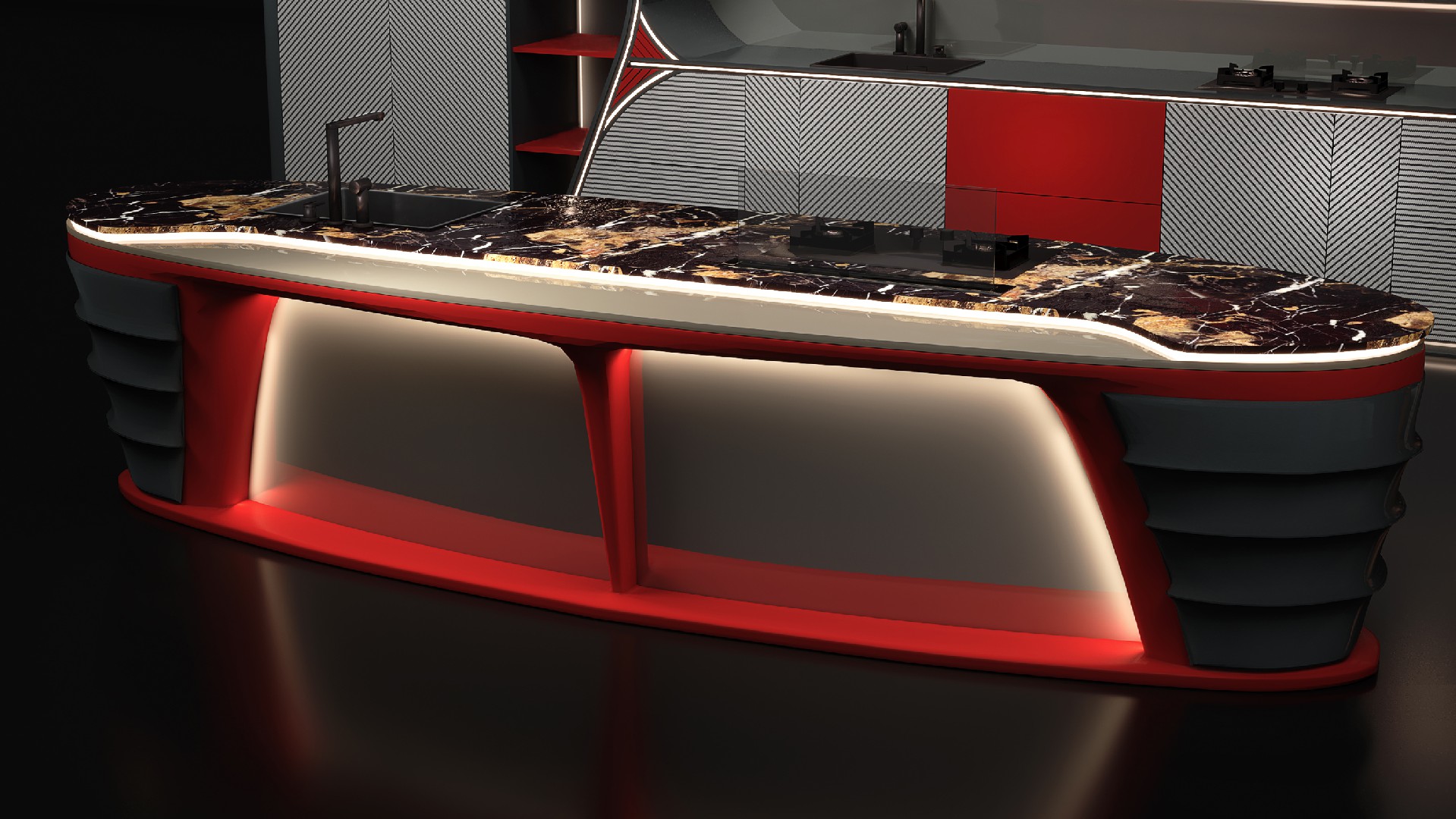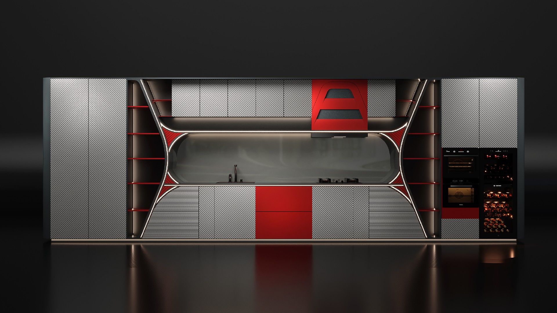 源自超跑的设计理念,融合超跑的设计精髓,我们将流线型的线条、动感的造型以及经典的红色元素巧妙地融入到厨柜的设计中,让厨房空间焕发出前所未有的活力与魅力,为您的家居生活带来前所未有的震撼体验。